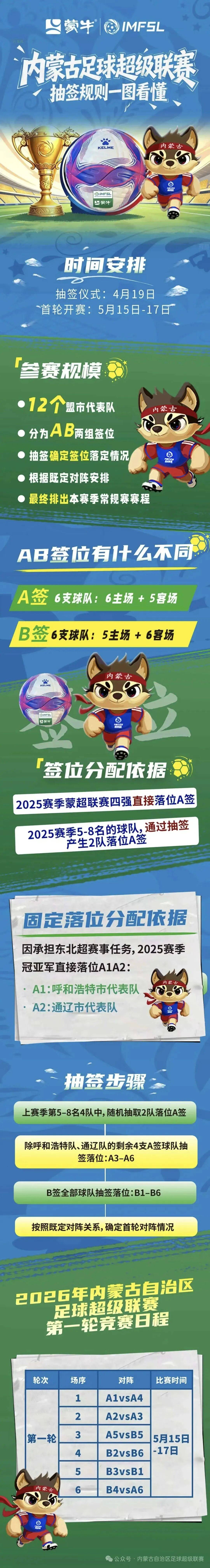 2026-04-20宝威体育,宝威体育官网,宝威体育APP下载,宝威体育网址蒙牛2026内蒙古自治区足球超级联赛抽签仪式,赤峰队抽中A4号签,首轮将对战A1号签呼和浩特队,揭幕战定于5月15日在呼和浩特体育场进行。