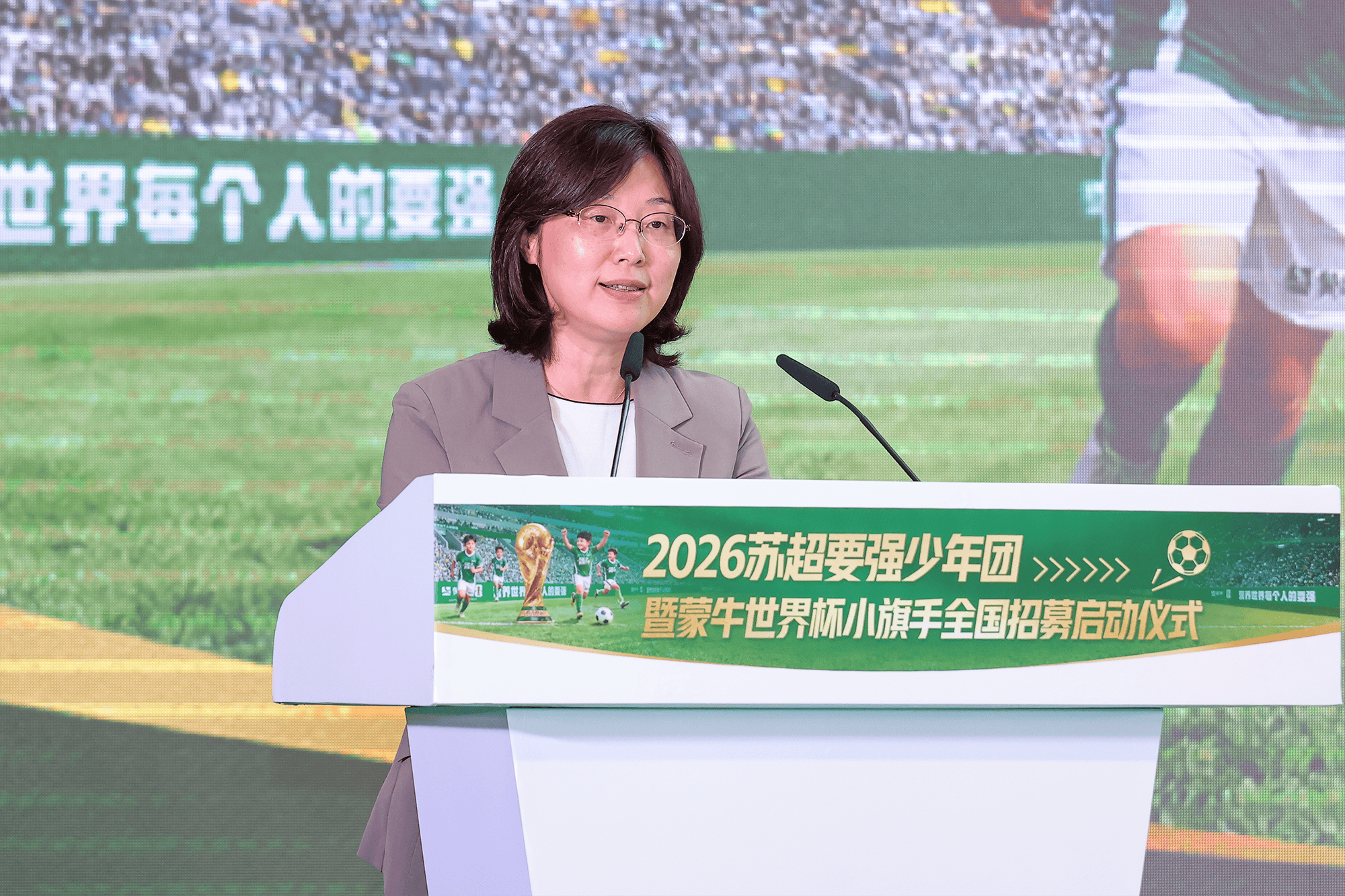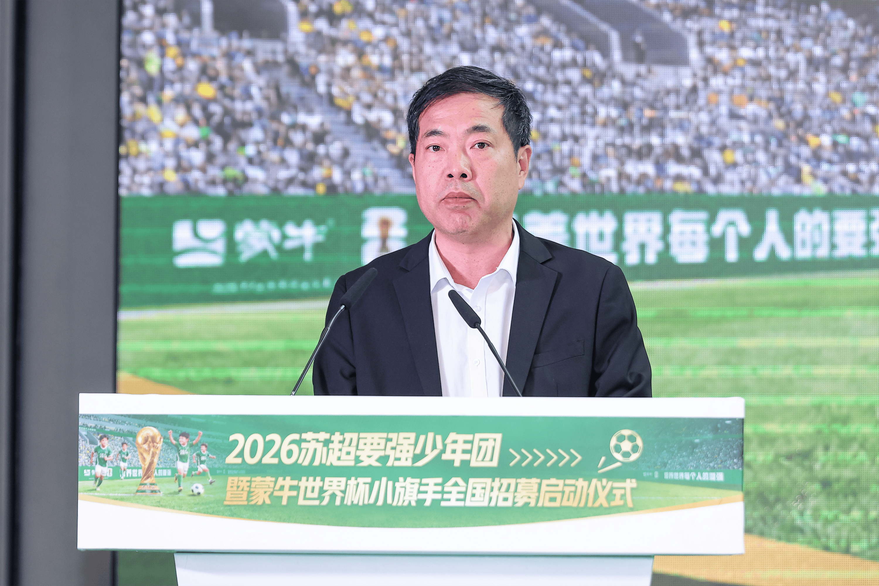 当天,江苏省广播电视总台党委书记、台长、集团董事长葛莱,江苏省体育局副局长、党组成员肖爱华,江苏省教育厅二级巡视员刘广鸣,蒙牛集团CGO赵兴继,江苏省广播电视总台党委委员、副台长、集团副总经理季建南,著名足球评论员黄健翔以及校园足球代表、基层青训教练等嘉宾出席本次启动仪式,共同见证这条贯通本土草根赛场与世界顶级舞台的青少年成长通道正式开启。
