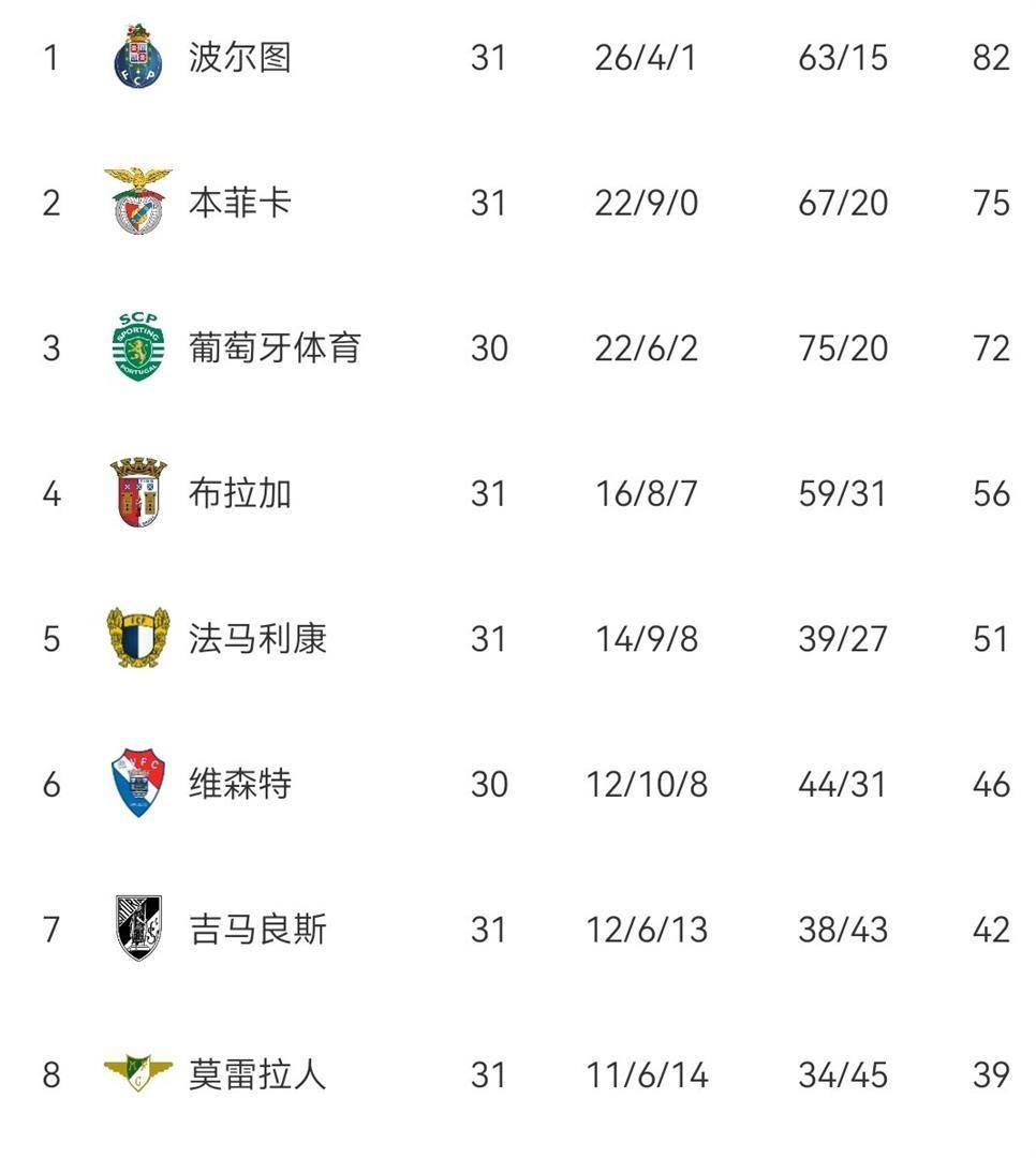 宝威体育- 宝威体育官网- APP下载葡超积分榜出炉!葡体1-1波尔图2-1本菲卡4莫雷拉人争冠已死?
