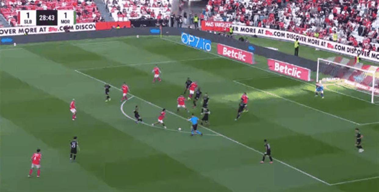 与此同时,本菲卡在主场迎战莫雷拉人,穆里尼奥排出了全主力攻击阵容。 开场仅仅2分钟,安东尼奥·席尔瓦在右路上演一条龙突破,推进至禁区后横传门前,巴雷罗跟进推射空门得手,本菲卡1-0闪电领先。 第25分钟,莫雷拉人打出高效反击,达尔在回防时意外滑倒,特拉瓦索斯抓住单刀机会推射破门,客队1-1神奇扳平。